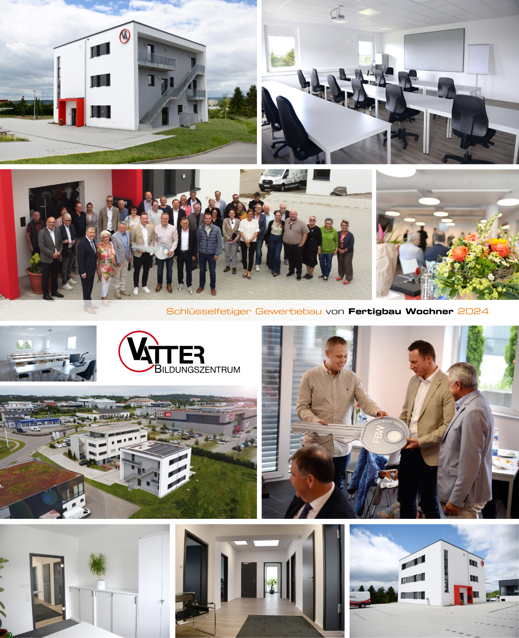 Am 14. Juni 2024 fand die feierliche Neubaueröffnung beim Vatter Bildungszentrum in Villingen-Schwenningen statt. Der Gewerbebau wurde vom erfahrenen Generalunternehmer Fertigbau Wochner aus Dormettingen in nur 11 Monaten Bauzeit schlüsselfertig umgesetzt.